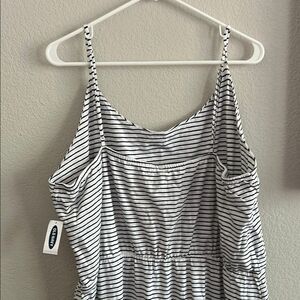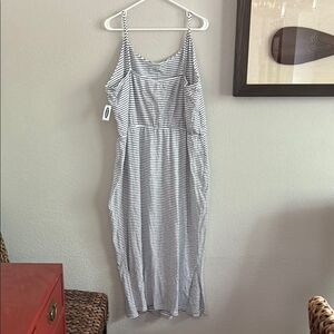 Stylish sleeveless dress with black and white stripes. Ideal for everyday wear.