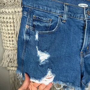 Old Navy Distressed Boyfriend Mid-Rise Jean cutoff Shorts size 4. Preowned. Excellent condition. Zipper fly. Distressed.