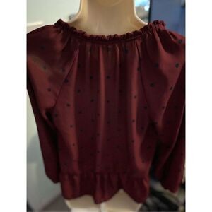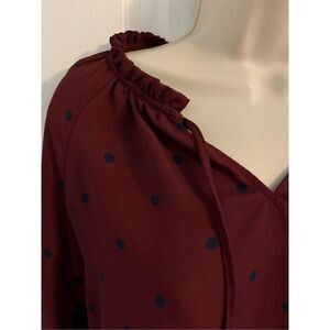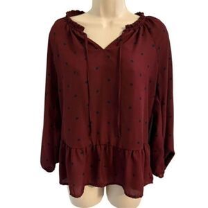 Old Navy Burgundy Long Sleeve Top with Navy Blue Polka Dots. Size Small