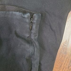 This is a pair of black career pants by Old Navy. They have an elastic waist and a zipper on the side. Note the fading and spot on the back pocket in photo 6.