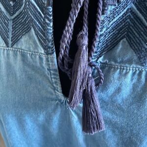 This is an Old Navy embroidered short sleeve cotton dress 🌼 A perfect cute summer day dress. Lovely tassel detail in the front adds to the boho charm. Cuffed short sleeves create a cool aesthetic. This item comes in great condition, no flaws.