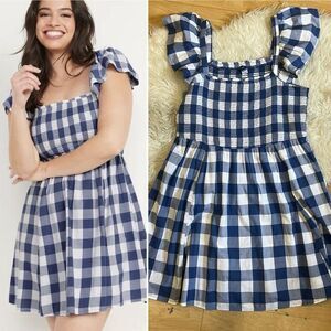 Old Navy Fit & Flare Flutter-Sleeve Gingham Mini Dress for Women L. NWOT. Perfect for fall plaid outfits.