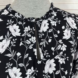 Old Navy Floral Ruffle Collar Long Sleeve Elastic Waist Dress Black White