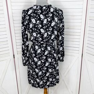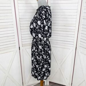 Old Navy Floral Ruffle Collar Long Sleeve Elastic Waist Dress Black White Small