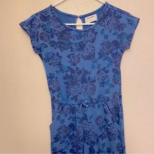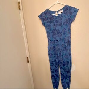 Old Navy French Terry Short-Sleeve Jumpsuit blue Floral cotton jogger L 10-12