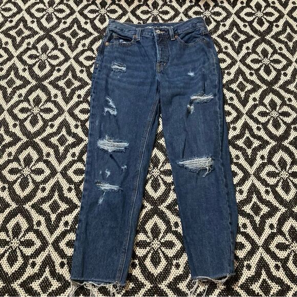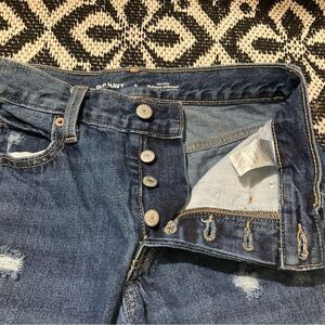 Old Navy High Rise Slouchy Straight distressed jeans size 0 medium wash button