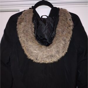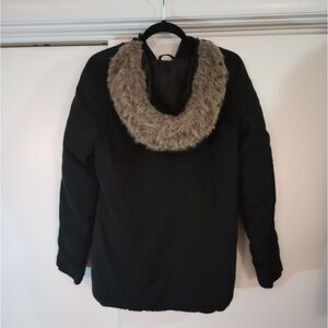 Black with brown Faux-Fur-Trim Quilted Hooded Coat