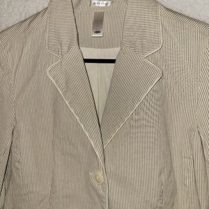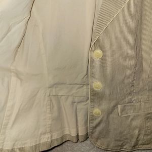 VEUC Medium beautiful tan and cream Old Navy light dress jacket it is a size medium, this jacket is absolutely beautiful has working pockets and can dress up any outfit.