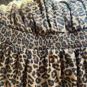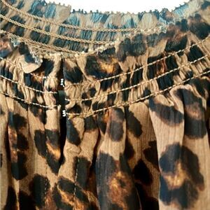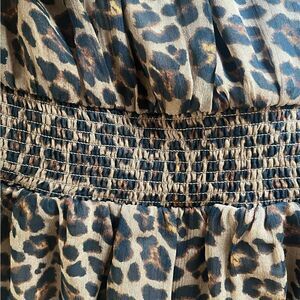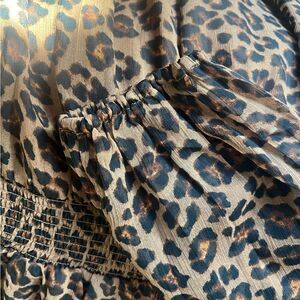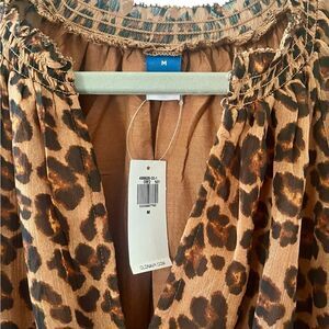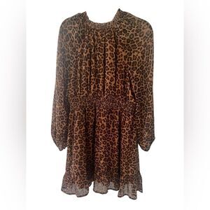 NWT, leopard print lined dress. V neck, gathered at waist and cuffs, 100% polyester. Size: medium, pit to pit: 17”, length: 33”
