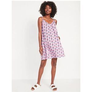 Old Navy Women’s Tie-Shoulder Mini Swing Dress in Pink Posies