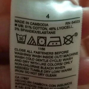 SIZE 6 - Measurements (flat): Waist 14.5", Front Rise 10", Inseam 29", Hem 4.5". (AN-0909)