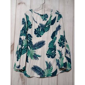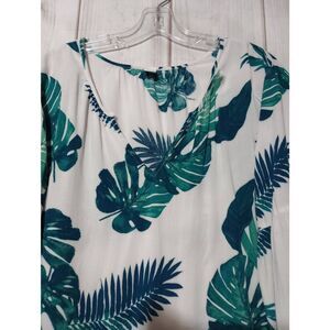 Old Navy Shirt Ladies 2xl White Green Tropical Semi Sheer