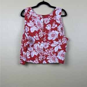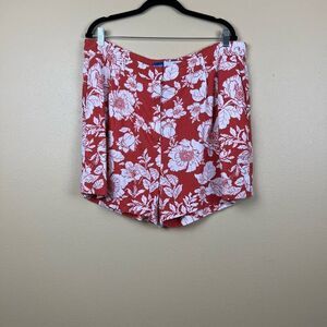 Old Navy Short Top Set Linen Blend Floral White Red High Rise Pockets Size XL