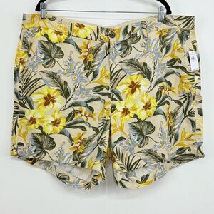 Old Navy Tan Linen Blend Tropical Floral Print Mid Rise Everyday Shorts NEW