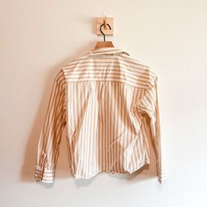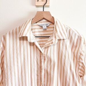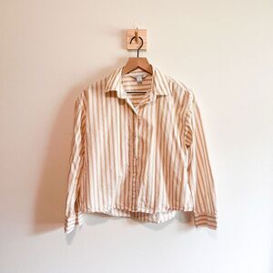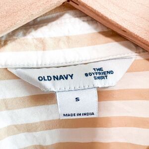 Old Navy The Boyfriend Shirt in Tan & White. In good condition. No holes, rips, or stains. Ours is a smoke free home.