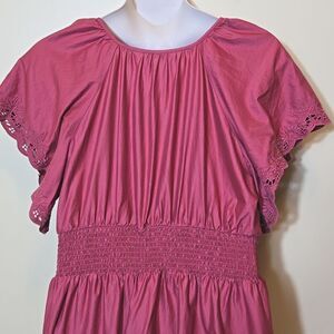 Old Navy Waist Defined Midi Dress XL Tall Eyelet Smocked Waist Cottagecore 2024