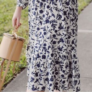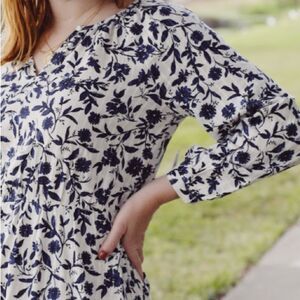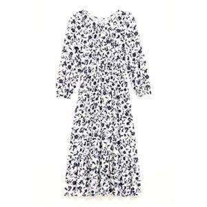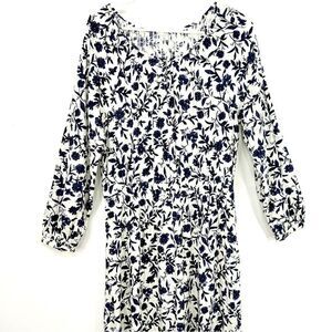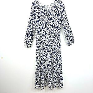 Old Navy White Blue Floral Ruffle Hem Long Sleeve Midi Peasant Dress