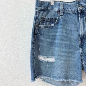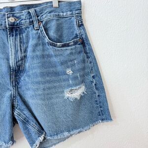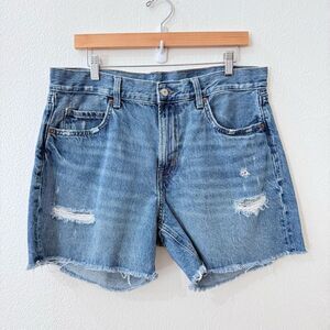 Old Navy Women's 12 Blue Distressed High Rise Slouchy Straight Cut Off Shorts
