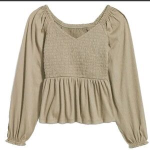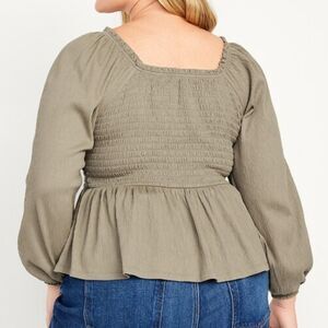 Old Navy Women's Long Sleeve Smocked Peplum Top Size XXL Praire Milkmaid Puff