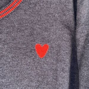 This Old Navy women's pullover sweater in size XL Tall features a solid gray color with a scoop neckline. Made from a blend of cotton, viscose, and nylon, it offers a comfortable knit fabric. The sweater includes heart detail and red trim accents. It is machine washable and manufactured in Vietnam. The item is pre-owned.