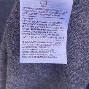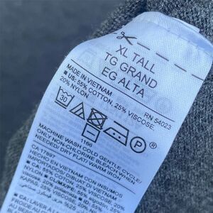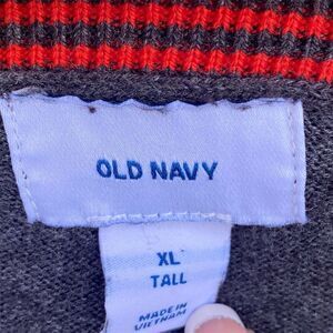 This Old Navy women's pullover sweater in size XL Tall features a solid gray color with a scoop neckline. Made from a blend of cotton, viscose, and nylon, it offers a comfortable knit fabric. The sweater includes heart detail and red trim accents. It is machine washable and manufactured in Vietnam. The item is pre-owned.
