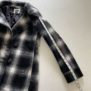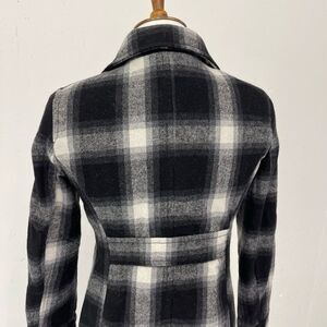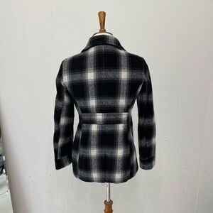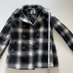 Old Navy black cream plaid winter pea coat double breasted xs small
