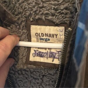 Olds Navy coat jacket. Full zip up, hooded, snap up also. Soft entire lines material size is Large 10-12.