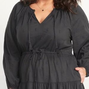 New with tags Large Grey Old Navy midi long sleeve dress with pockets and adjusted wasit embroidered leaf detailing around the dress with neck tie. Such a good casual dress that can be worn for different ocassions. Can easily be dressed up with some heels.