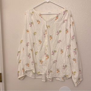 Old Navy white Lightweight Blouse top Floral Button Front Blouse plus size XXL