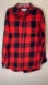 Red and black plaid boyfriend button up, super soft, breathable, 100% cotton, complete with functional pocket.