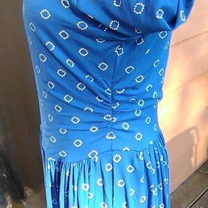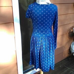 NWT Wonderful dress: long sleeves, scoop neck, ruched sides, top lined, slightly blousy at waist with a curved waist that goes down a tiny bit in front and is straight in back. Super soft fabric. Size L measures 40 at chest, 32 at waist, full skirt, 40 long from shoulder to hem. Very comfy.