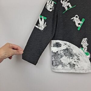 Gray with spaceman surfers, size xs. Crewneck, long sleeves.