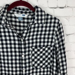 Old Navy button down flannel Black and white Front breast pocket Long sleeve Measurements: 26” shoulder to hem 19” armpit to armpit