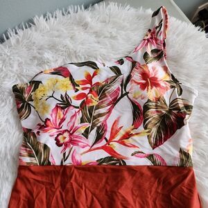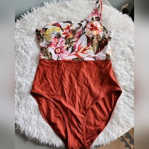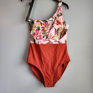 Old Navy One-Shoulder Print/Color Block One-Piece Swimsuit