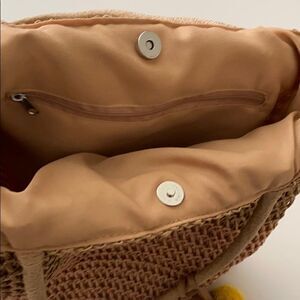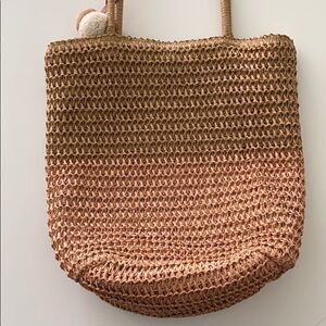 Only used once, cute beach bag. Fabric lined inside, and one zippered pocket. 3 color ball tassel.