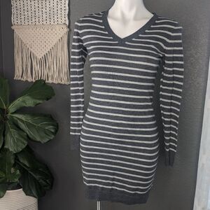 Old Navy grey and white striped sweater dress. Size XS. Can be worn as a tunic with leggings or a dress.