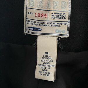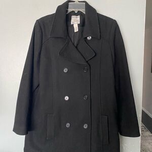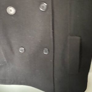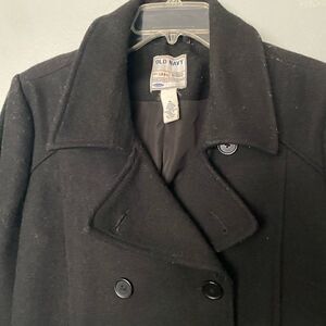 Old Navy wool blend double breasted black pea coat in great condition. Armpit to armpit is approximately 22.5” flat. Length from shoulder to hem is approximately 32”.