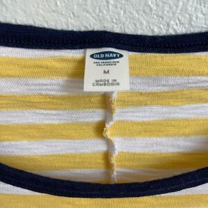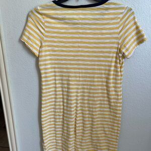 Old Navy Yellow & White Striped Tee Shirt Dress Navy collar Super comfy Size Med