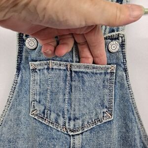So cute! Light blue wash, size 5. Three button holes at the top for adjusting.