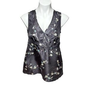 Old Navy gray floral 100% silk sleeveless top size M. Style 435831. Button and keyhole opening. Good condition. No flaws. 100% silk. Length 25” Chest 17”.