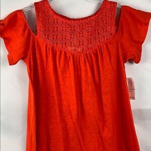 Old Navy cold shoulder short sleeve knit top. New with tags. Button on back. Lace detail. Bust is 30” and length is 24” from shoulder to hem.