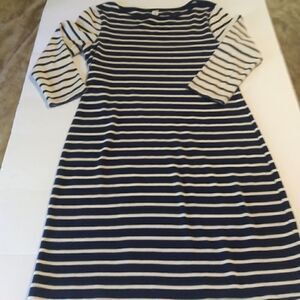 Old Navy striped blue and white dress size small semi boat neck 3/4 length sleeves knee length (im a med size 8/10 and i wore in the cover photo) really cute soft and comfortable
