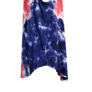 Cute buttery soft rayon and viscose material. Check pictures for hem design. 19 in across bust and 27 in length.