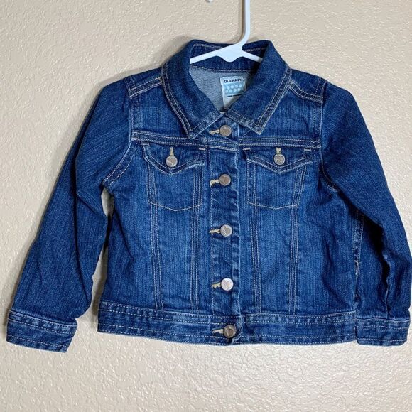 Old Navy toddler girl jean jacket size 2T. Great condition there is one small stain by collar shown in pic not to noticeable other than that in great condition!