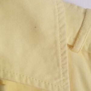 Preowned and preloved jacket that is the perfect color for the much needed spring around the corner! The color is a shade of lemon (not portrayed well in the unbrightened photos. There are a few small back dots, shown in pics. May be able to be cleaned but I'm not sure.