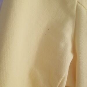 Preowned and preloved jacket that is the perfect color for the much needed spring around the corner! The color is a shade of lemon (not portrayed well in the unbrightened photos. There are a few small back dots, shown in pics. May be able to be cleaned but I'm not sure.