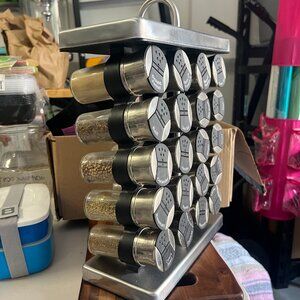 Olde Thompson Glass 20 Jar Spice Rack Stainless Steel Kitchen with Lid