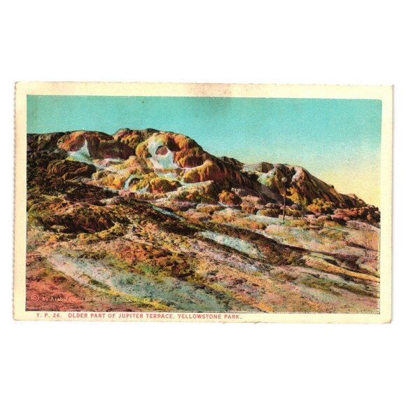 Vintage postcard of scenic Jupiter Terrace Yellowstone Park with vibrant colors detailed topography published by Bloom Bros Co Quality Line Minneapolis