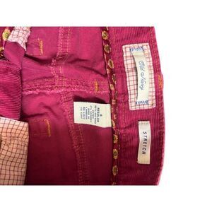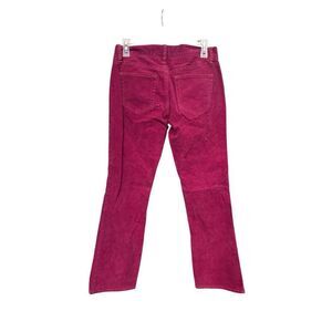 Old Navy straight leg pants in a rich pink corduroy fabric. Features a classic five-pocket design with button and zip closure. Mid-rise fit with slight stretch. Size 6
