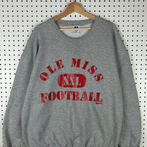 Ole Miss Rebels Football Crewneck XXL Sweatshirt USA Made Vintage Gray Russell